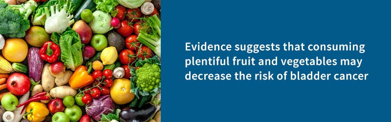 - The combined consumption of vegetables and fruit may decrease bladder cancer risk.