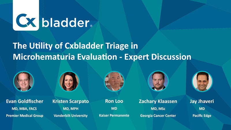 Pacific Edge Senior Medical Director Dr. Jay Jhaveri hosts an expert panel discussion with Dr. Evan Goldfischer, Dr. Kristen Scarpato, Dr. Ron Loo, and Dr. Zachary Klaassen focused on the use of Cxbladder Triage, a urine-based tumor marker (UBTM) test, in the evaluation of patients presenting with microhematuria. Topics covered include: