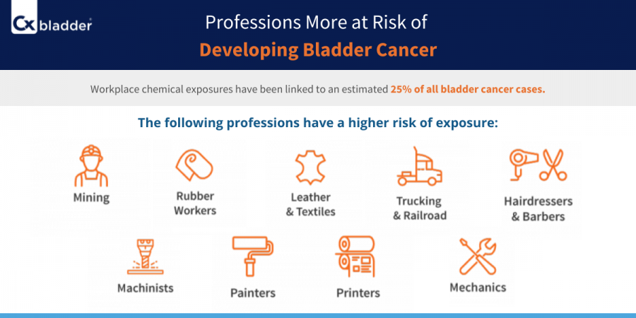 - Other occupational groups. It can be difficult to pin down exact levels of risk for specific occupational groups, as many factors can be involved in a person’s individual risk profile. However, some evidence suggests that other professions which involve regular contact with known bladder cancer carcinogens, such as farmers, printers and dry cleaners, may also have an increased risk of developing bladder cancer.