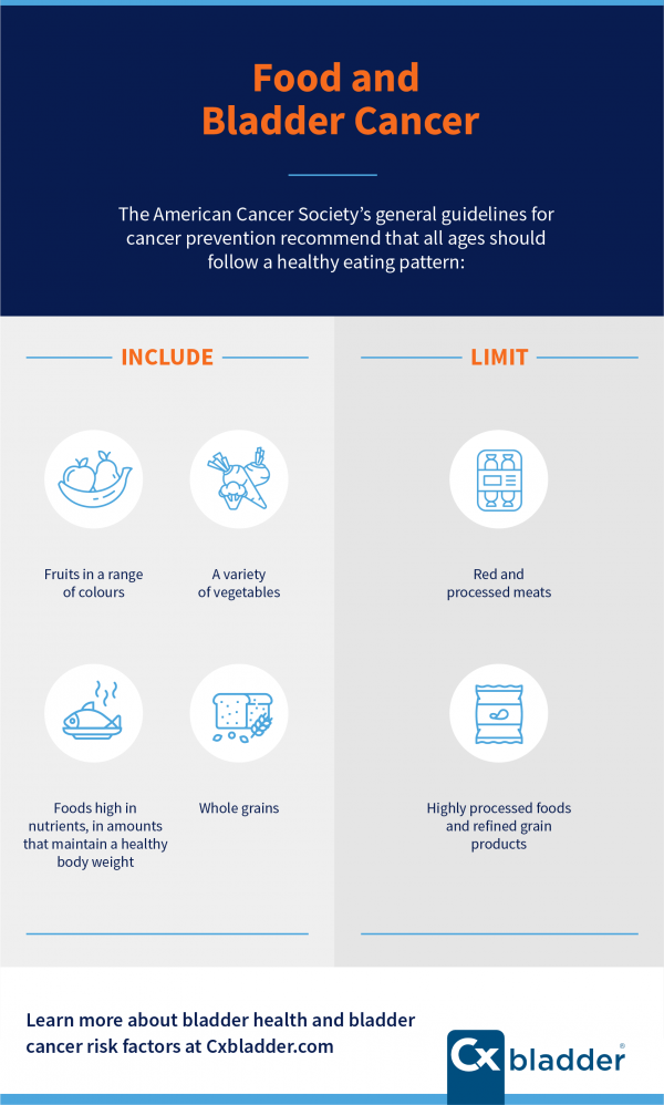 Remember that these are general guidelines and mainly apply to sensitive bladders. In the following section we will discuss what is known regarding food and cancer/ bladder cancer. For specific guidelines related to other bladder conditions you may wish to refer to American Urological Association resources available at www.urologyhealth.org. If you are concerned about your bladder symptoms, seek advice from your doctor.