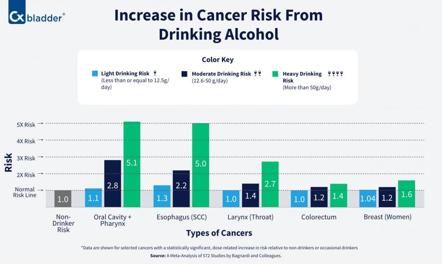 Will drinking alcohol increase my risk of cancer? It’s a common question while also being a source of considerable confusion. A National Cancer Institute survey found only 34% of US adults believe alcohol can cause cancer, while 27% say no and 39% don't know;1 meanwhile, two-thirds agree it seems like everything causes cancer.2 Perceptions like this are not helpful when it comes to providing clear guidance around risk.3 In this post we take a closer look at the evidence: what is known about alcohol and cancer risk, alongside other ways that alcohol can affect the bladder.