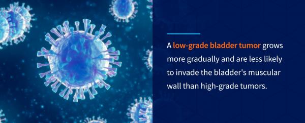 - Low-grade bladder tumor: A type of tumor with cells closer in organization and appearance to healthy cells. They typically grow more gradually and are less likely to invade the bladder's muscular wall than high-grade tumors.