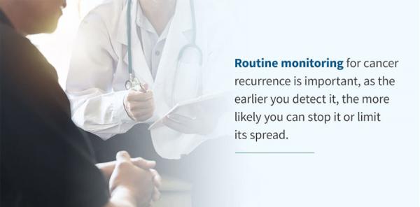 Regular follow-up appointments with your oncologist or medical provider are essential to help monitor for cancer recurrence. During these follow-up appointments your medical provider will assess your health for any signs or symptoms of cancer recurrence.