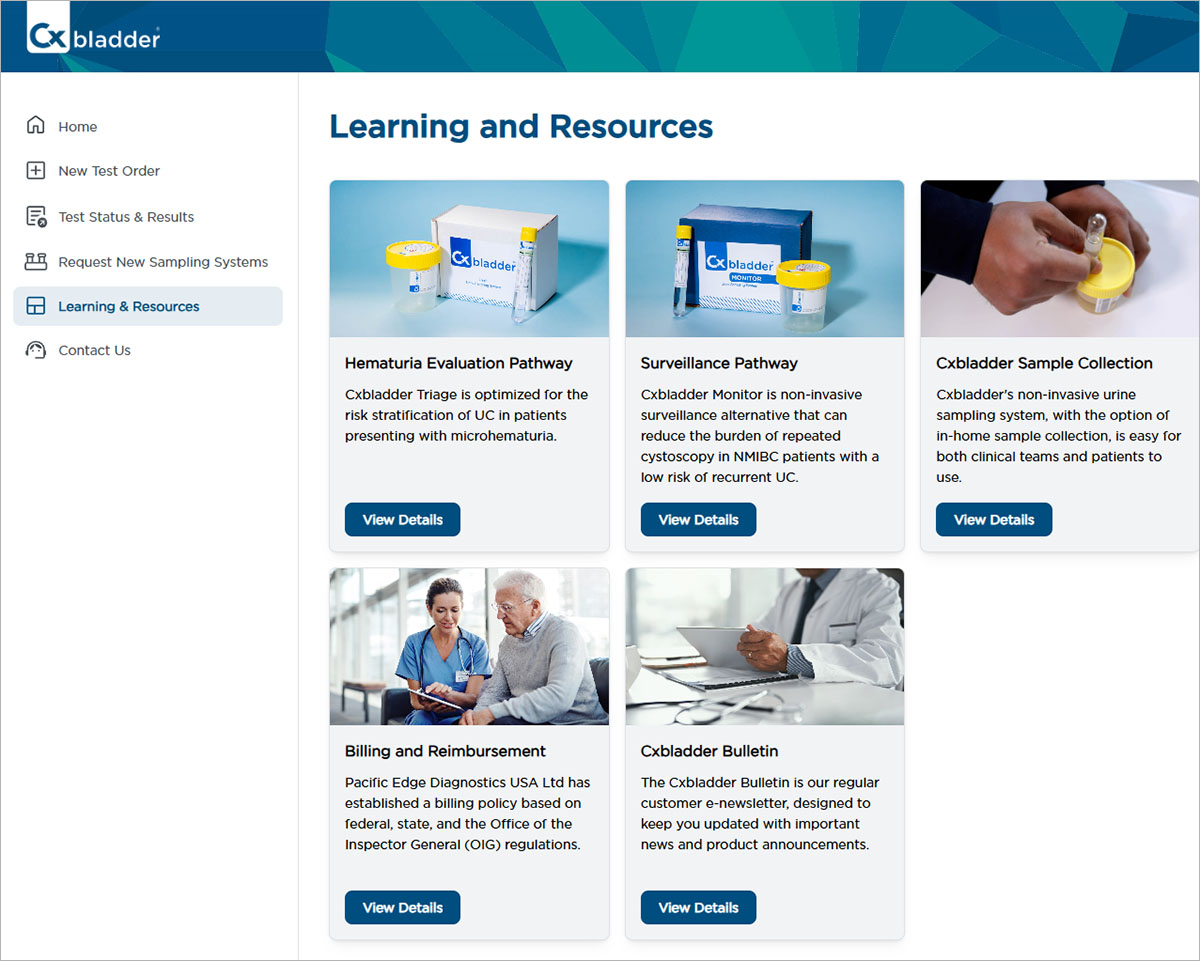 The Cxbladder Portal includes a Learning and Resourcing area with accessible information